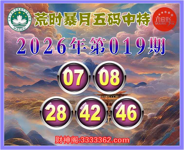 019期:『荒时暴月』 🏃‍♀️五码中特🏃‍♀️【07.08.28.42.46】开:46