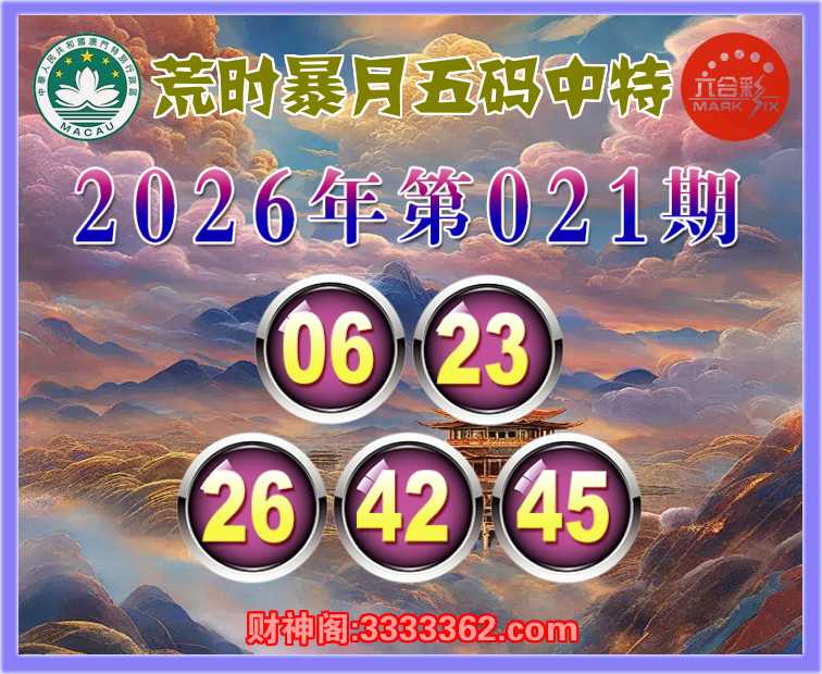 021期:『荒时暴月』 🏃‍♀️五码中特🏃‍♀️【06.23.26.42.45】开:42