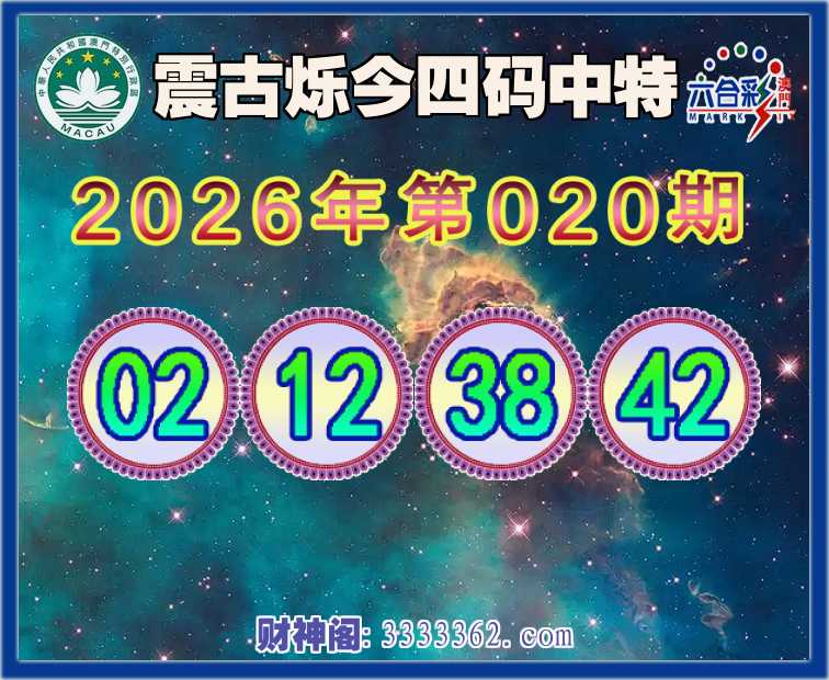 020期:【震古烁今】 ⛩️四码中特⛩️【02.12.38.42】开:12