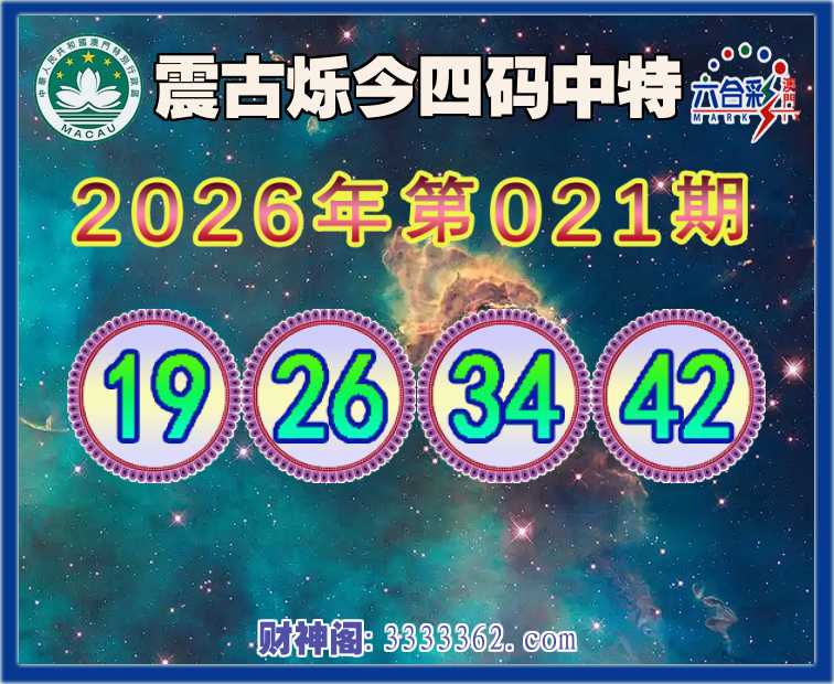 021期:【震古烁今】 ⛩️四码中特⛩️【19.26.34.42】开:42